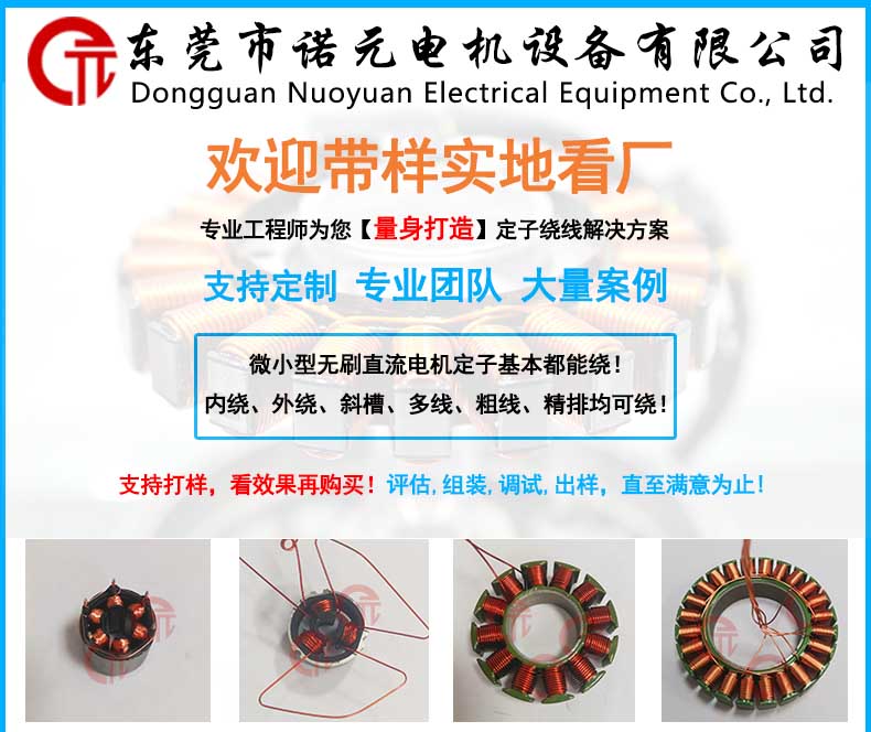 歡迎進入東莞市諾元電機設備有限公司官網!公司主營:無刷繞線機,電機繞線機,馬達繞線機,定子繞線機,飛叉繞線機,高速繞線機等!