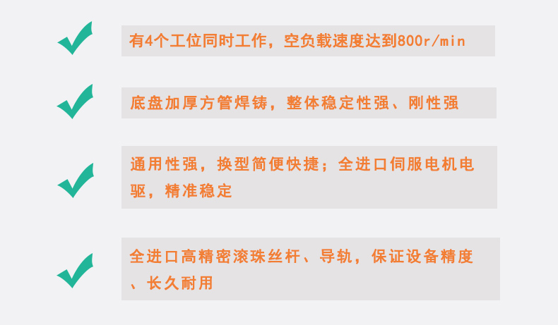 ◆ 通用性強,換型簡便快捷;全進口伺服電機電驅,精準穩定